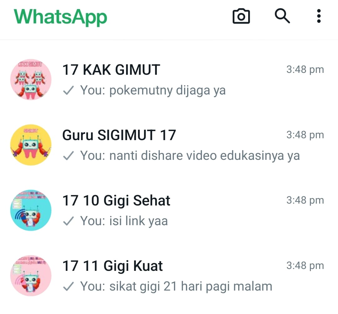 RUBIMUT (gRUp BIncang kesehatan gigi dan MUluT) yaitu media komunikasi antara tenaga kesehatan dan sekolah melalui WhatsApp grup.